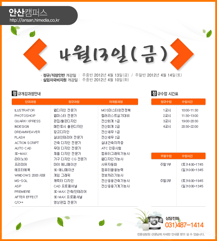 [정규개강]안산캠퍼스 2012년4월 정규개강안내